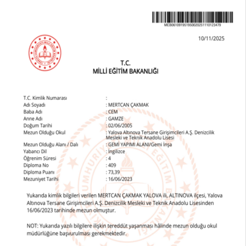 Yalova Üniversitesi / 2023 - 2025