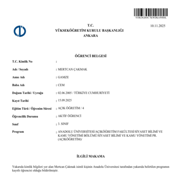 Anadolu Üniversitesi / 2025 - Devam Ediyor